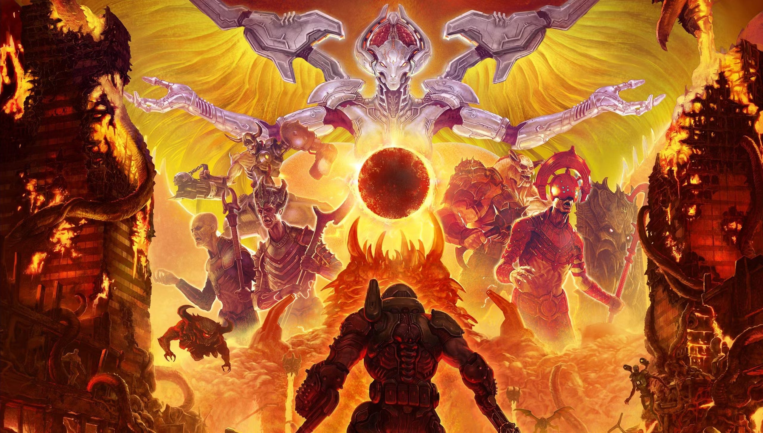 Here's how I imagine the beginning of the end which was Eternal: at some point, some nerd in a conference room reinvented Gnosticism by blurting out, “hey, what if DoomGuy started fighting angels instead of demons?” And the rest is science. A hive of nerds gets to work, coming up with elaborate backstories, esoteric taxonomies, codex entries, world-building, to pay their tally of complexity which all nerds take to be the sign of merit. They probably pulled back a little, qualifying the angels as “aliens,” because then they'd have to reckon with God. Still, DOOM’s new baddies are called Maykr, a crappy play on “Maker,” and basically look like angels with wings.